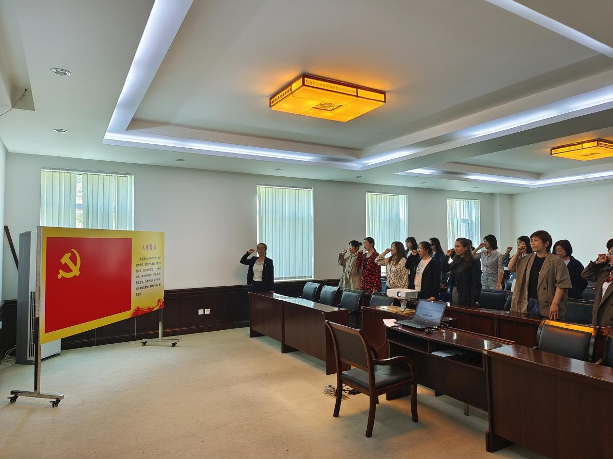 最后,全体党员在朴立红书记的带领下重温入党誓词,共唱《没有共产党就没有新中国》。